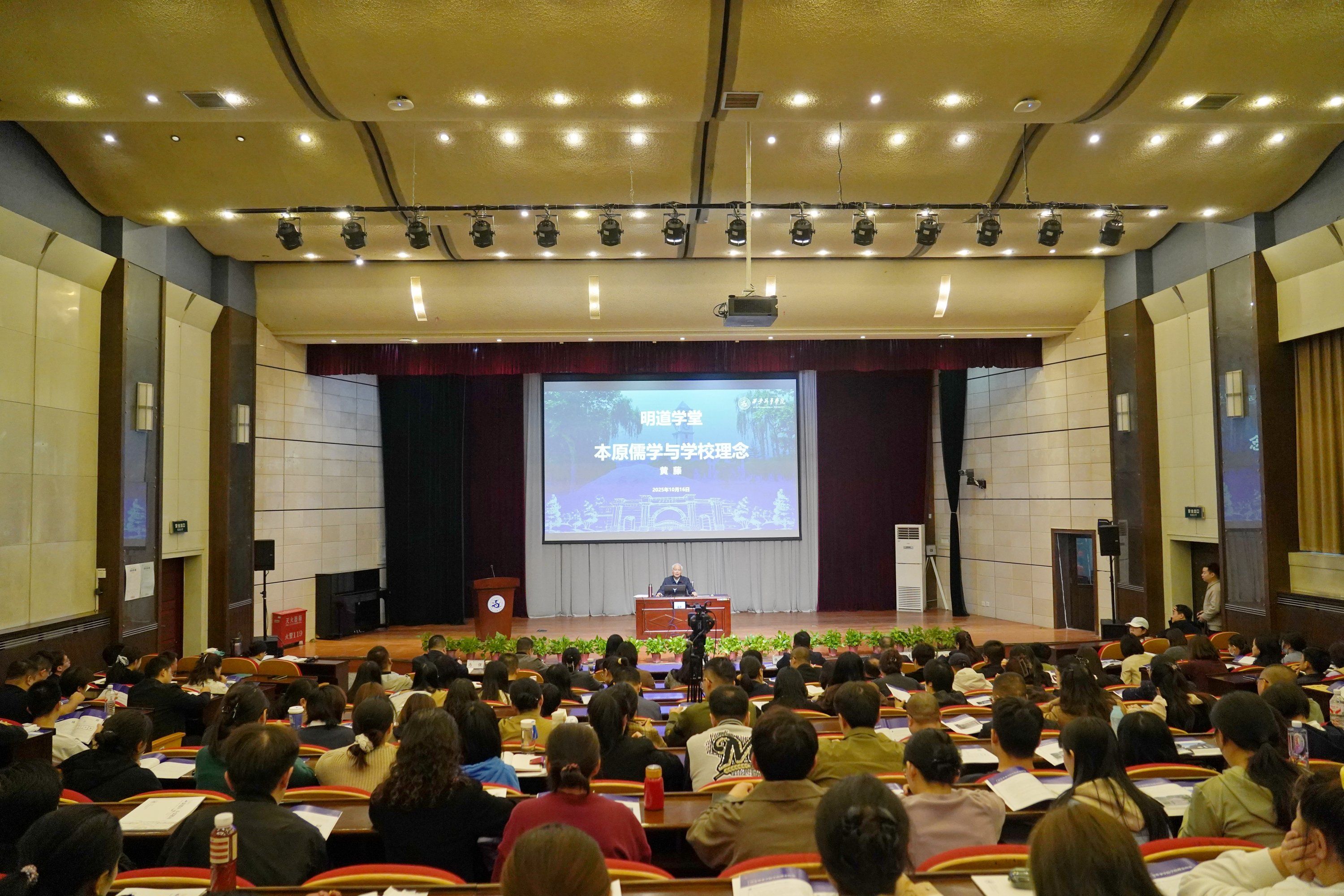 10月16日、17日,我校“明道学堂”在学术苑2号报告厅开讲。理事长、校长黄藤以“本原儒学与学校理念”为主题讲授第一讲,陕西师范大学尤西林教授以“AI 时代高等教育危机与通识教育的应对功能”为主题讲授第二讲。学生工作部、各书院的学生管理干部,全体辅导员及正蒙导师参加学习。