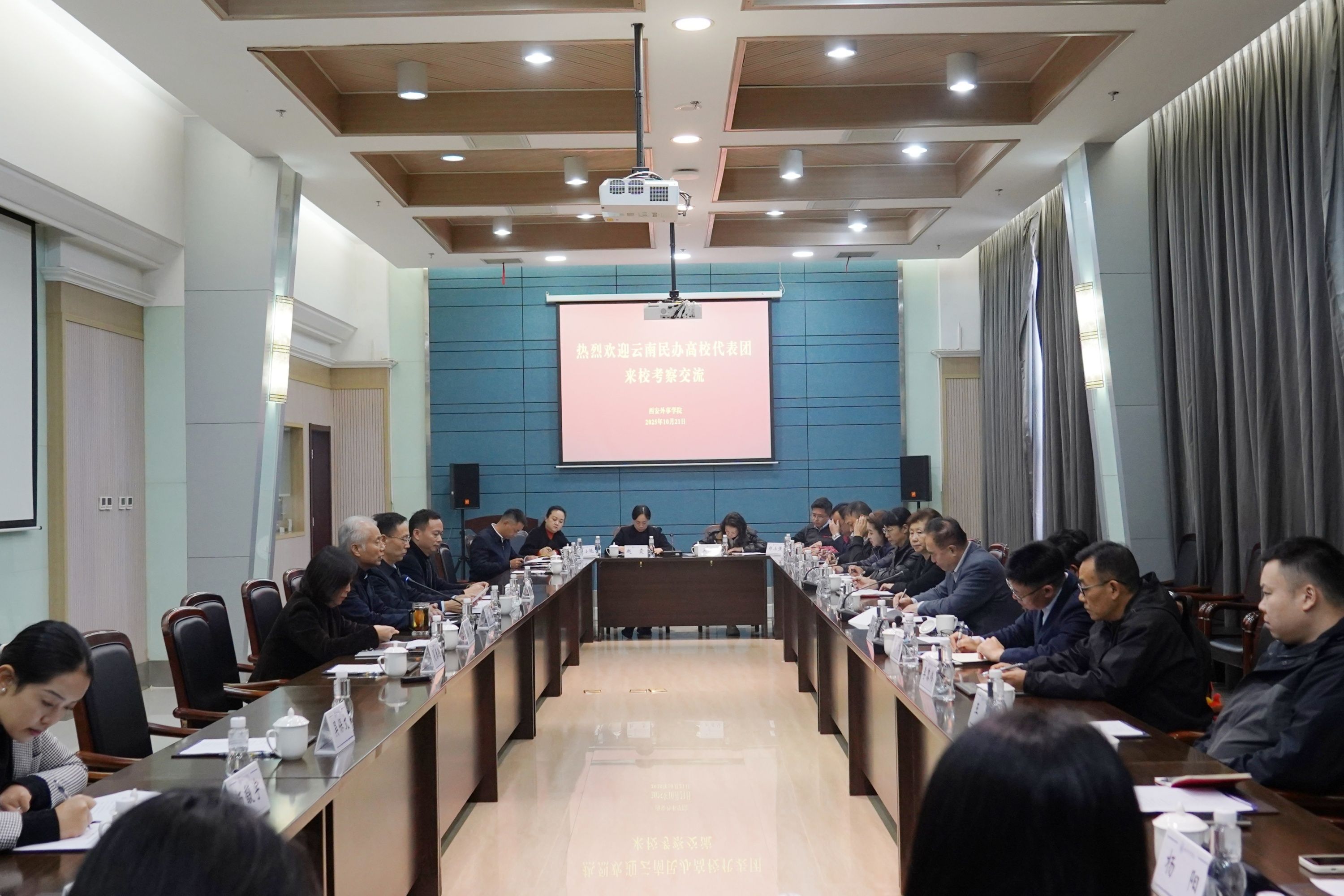 2025年10月21日,特约国家督学、中国民办教育协会监事会副主席、云南省民办教育协会会长邹平率领云南民办高校代表团20余人来我校考察交流。我校理事长、校长黄藤,党委书记雷西合等相关工作负责人陪同考察座谈。