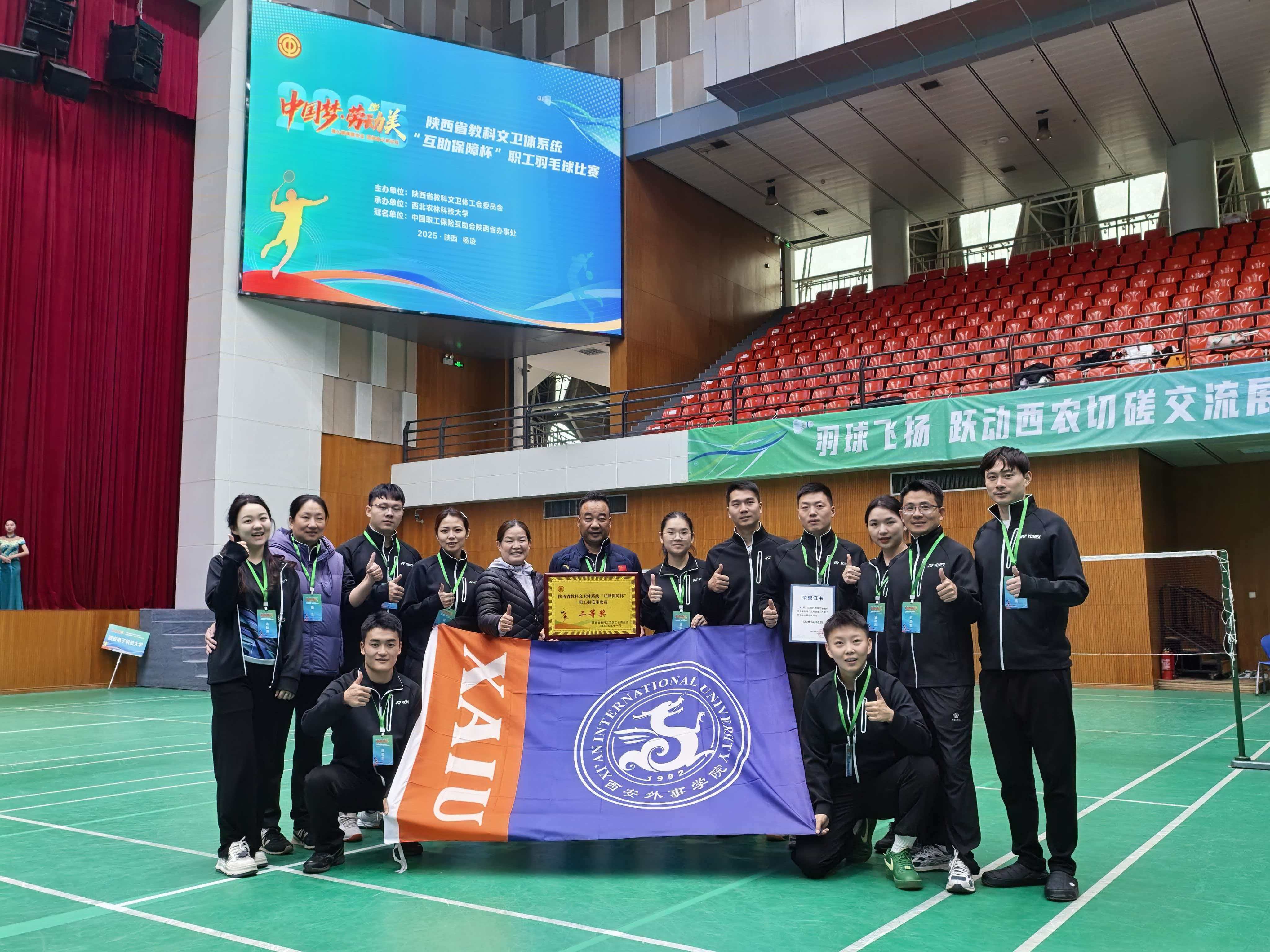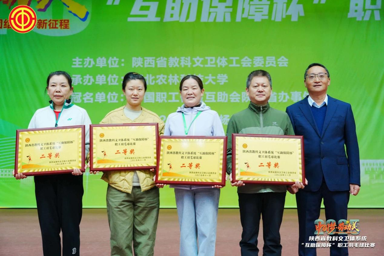 11月2日,以“中国梦·劳动美——凝心铸魂跟党走 团结奋斗新征程”为主题的2025年陕西省教科文卫体系统“互助保障杯”职工羽毛球比赛圆满落幕。我校教职工羽毛球代表队凭借顽强拼搏的精神与默契协作的团队力量,在全省57支精英队伍的激烈角逐中脱颖而出,最终斩获团体第七名及团体二等奖的优异成绩,实现了学校在该项省级赛事中的历史性突破。