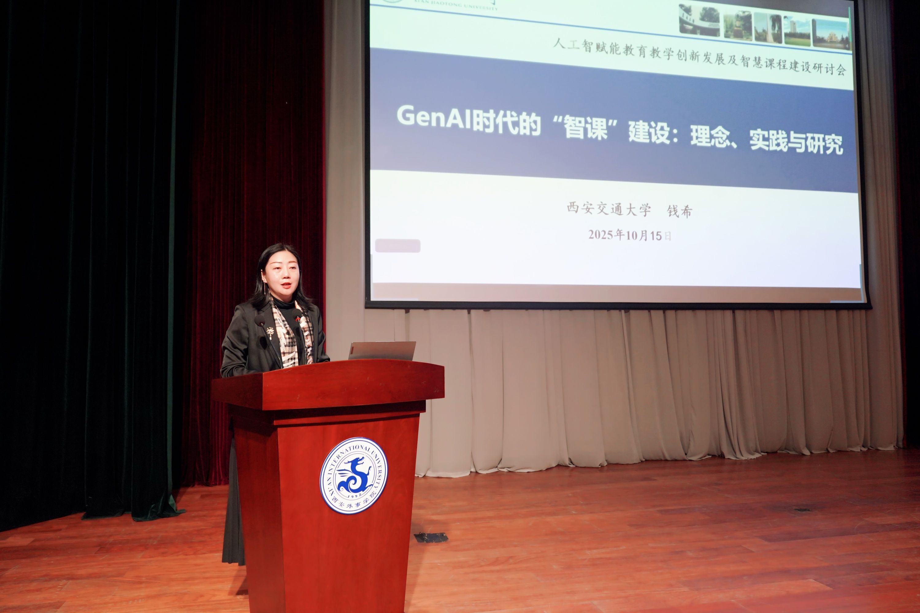 西安交通大学钱希教授作了以《GenAI时代的“智课”建设:理念、实践与研究》为主题的报告。她从底层逻辑、实施路径、实践案例与研究反思四大维度,系统拆解智课建设核心要点。将AI赋能作为提升教学竞赛、教研项目与科研成果的关键路径,提出智课建设七大要素,并通过数字人构建慕课资源、智能体辅助课堂互动等案例,进一步指出技术效用取决于教学设计。