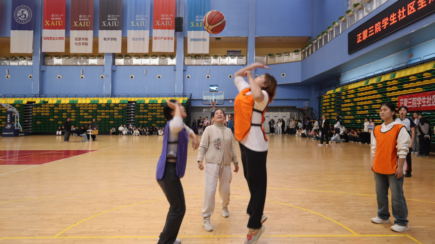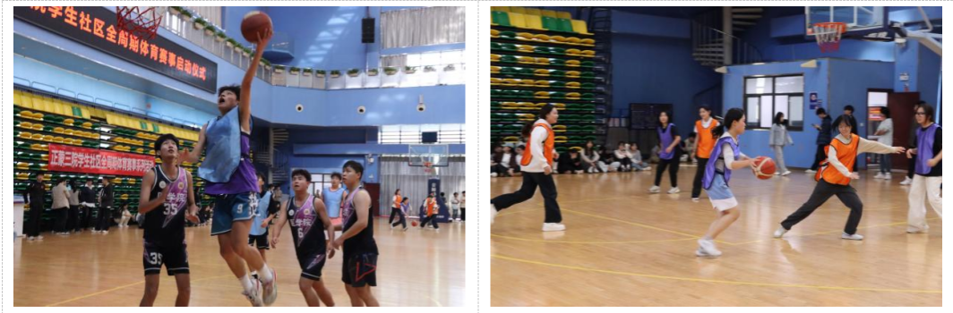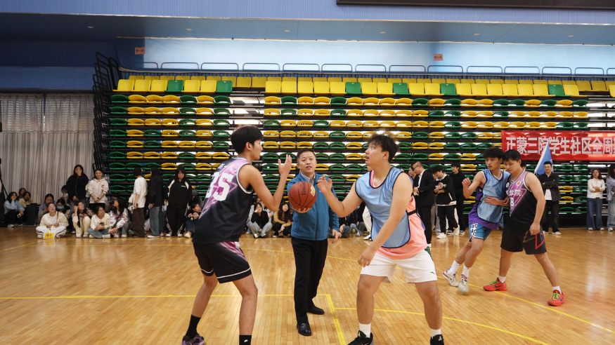 随后学校体育运动中心主任李养丽与学生教育与就业指导办公室副主任周政辉共同为首场楼内篮球赛进行开球。简单的动作,既传递着竞技的传承,也寄托着学校对学子们“既要读万卷书,也要强身健体”的殷切期望。