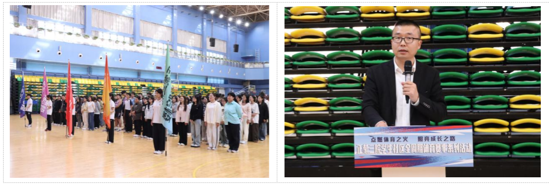 2025年10月15日下午,正蒙三院学生社区全周期体育赛事启动仪式在体育运动中心篮球馆隆重举行。正蒙三院院长张建良、学校体育运动中心主任李养丽等领导,及书院楼楼长、导师、运动员和裁判员代表参会。