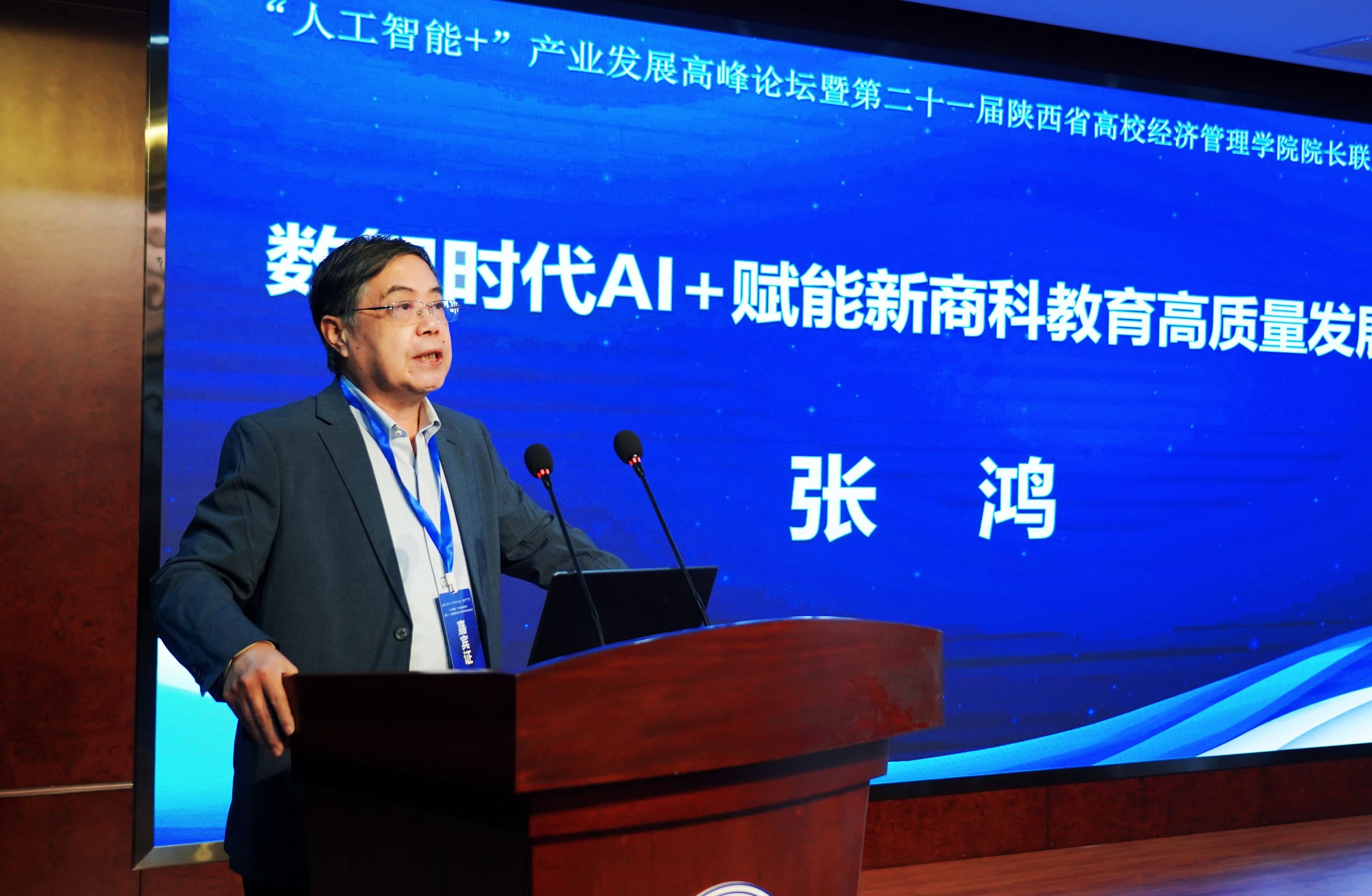 西安邮电大学学术委员会副主任、陕西省经济学学会会长张鸿教授在《数智时代AI+赋能新商科教育高质量发展》报告中,提出“数智融合、产教协同”的创新路径,为推动新商科建设提供理论支撑与实践参考。