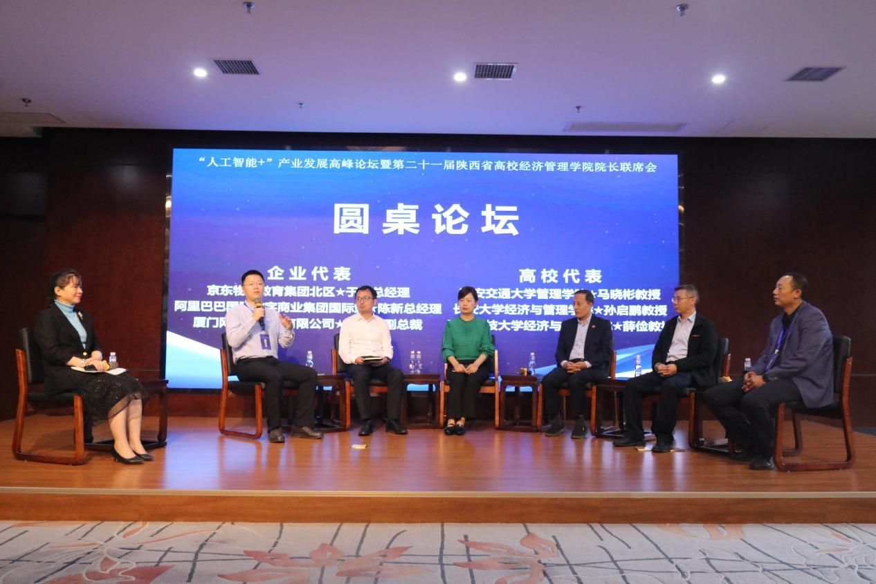 高校方阵由西安交通大学管理学院马晓彬教授、长安大学经济与管理学院孙启鹏教授、陕西科技大学经济与管理学院薛俭教授组成;企业方阵则包括京东物流教育集团北区总经理于洋、阿里巴巴国际数字商业集团国际站总经理陈新、正保远程教育集团总裁助理兼厦门网中网软件有限公司副总裁徐建宁等业界代表。双方围绕人工智能在教育与产业融合中的实践路径展开深度交流。